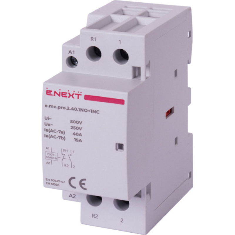 Модульний контактор e.mc.pro.2.40.1NO+1NC, 2р, 40А, 1NO+1NC, 220В