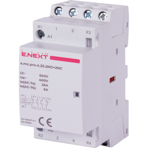 Модульний контактор e.mc.pro.4.25.2NO+2NC, 4р, 25А, 2NO+2NC, 220В