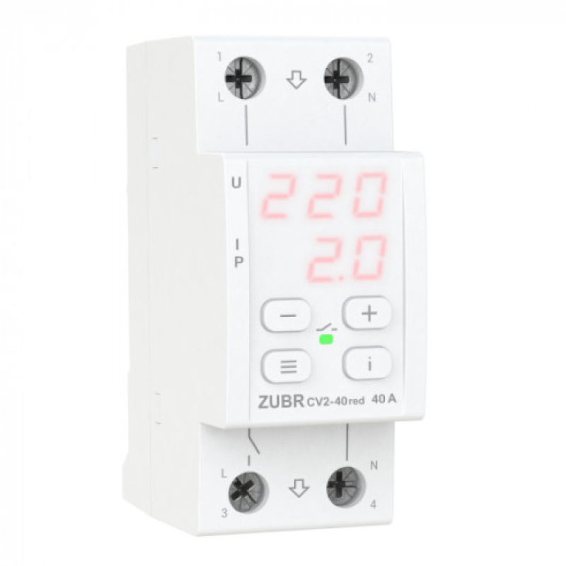 Реле напруги с контролем струму ZUBR СV2-40 red