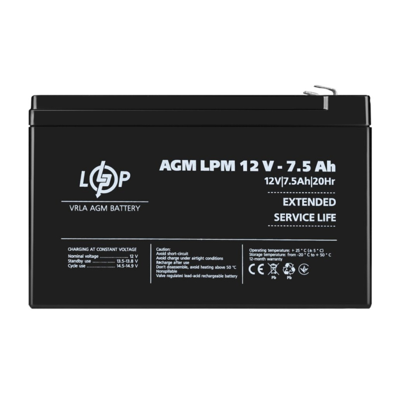 Аккумулятор AGM LPM 12V - 7.5 Ah