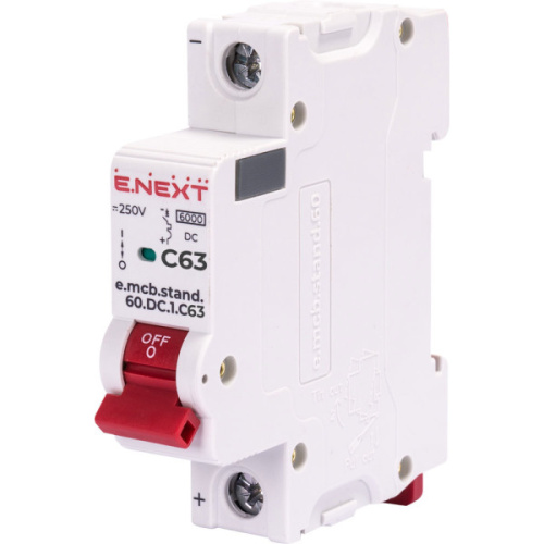 Модульный автоматический выключатель e.mcb.stand.60.DC.1.C63, 1р, 63А, C, 6кА, DC